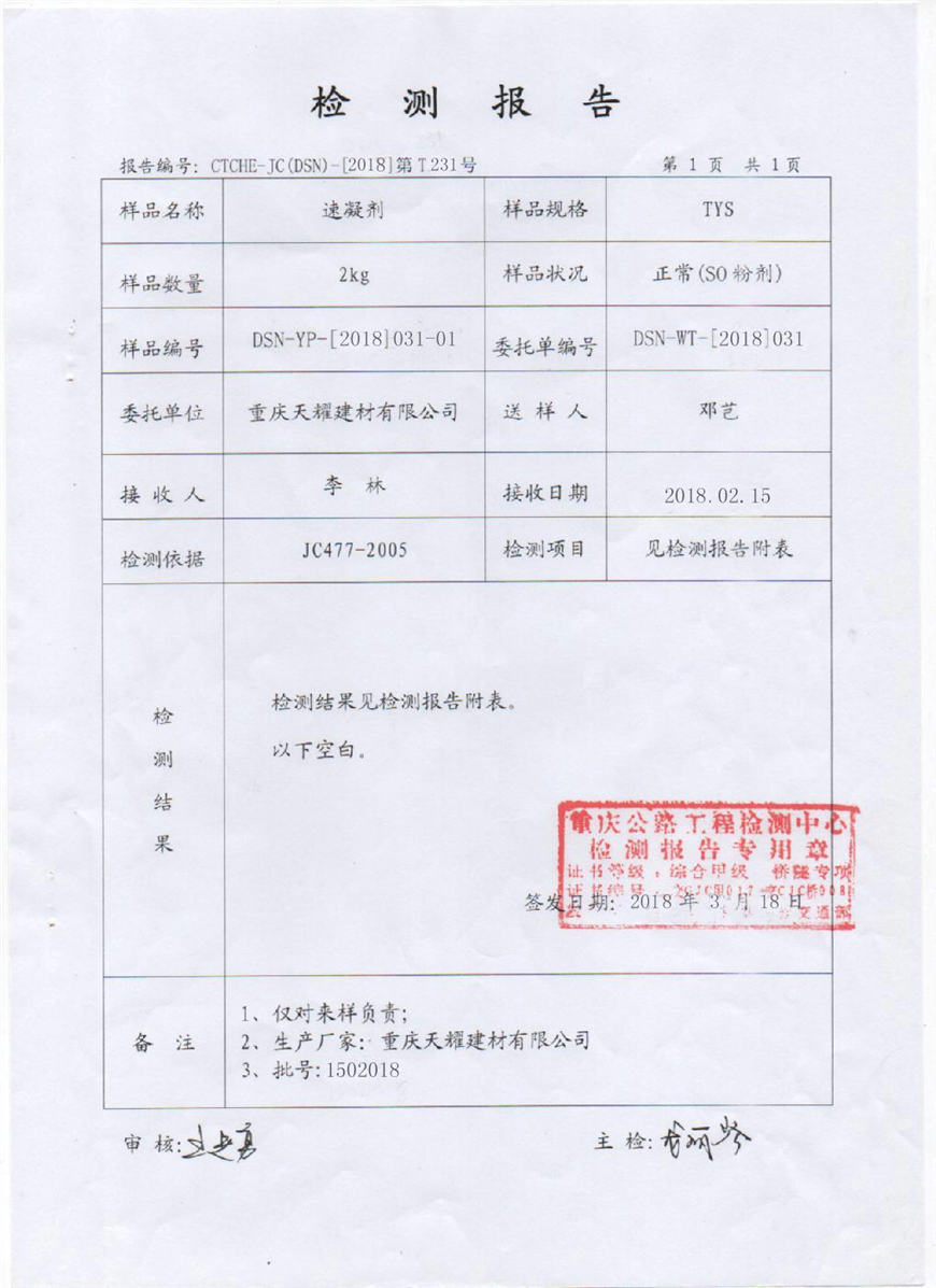 速凝劑檢測(cè)報(bào)告